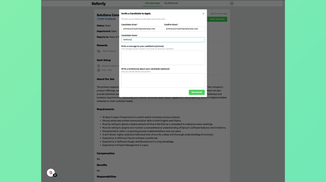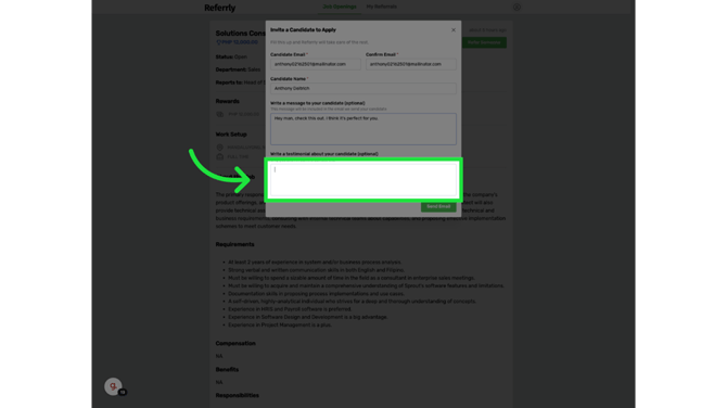 Enter a testimonial about the person you are referring. Only the HR Manager reviewing their application will see this.