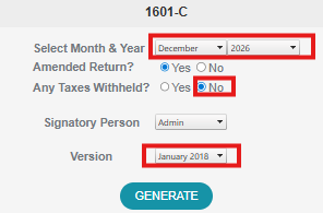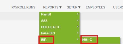- Go to Reports > BIR > 1601-C.
