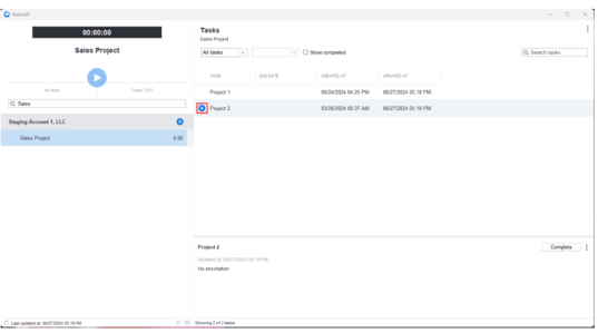 Once the setting is enabled, the desktop timer will no longer show the Start button when a project is highlighted. The user will be required to select a task before tracking can begin.