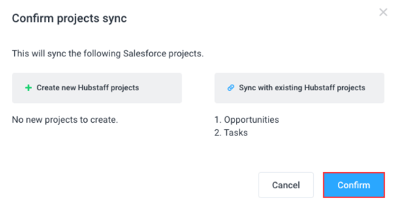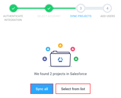 Next, you’ll be taken to sync your Salesforce projects. You can choose to sync all existing projects, or manually choose from a list of projects you wish to connect.