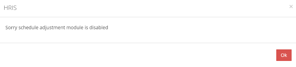 - Schedule Adjustment may still appear in My Requests/My Stuff if enabled via Access Level (Navigation Access), but if this policy is disabled, the system will prompt an error: