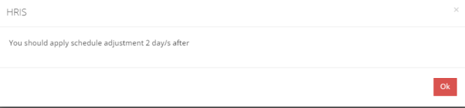 - This sets the number of days when an employee can apply for a Schedule Adjustment application after its exact schedule. Employees can either file anytime or set a number of days they can file later than the actual date of the SA