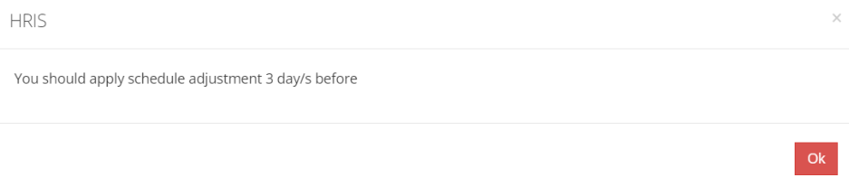 - This sets the number of days when an employee can apply for a Schedule Adjustment application before its exact schedule. Employees can either file anytime or set a number of days they can file in advance