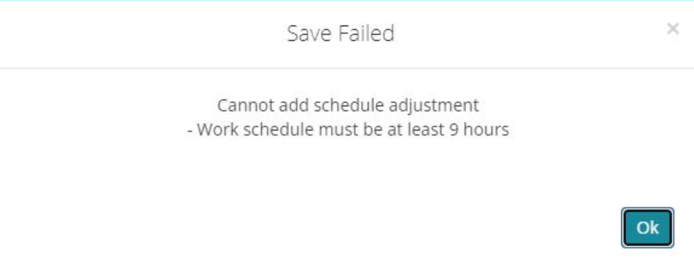 For example, based on the Work Schedule, he's required to work 9 hours including break. However, he's trying to file a Schedule Adjustment with a shift less than the required hours: