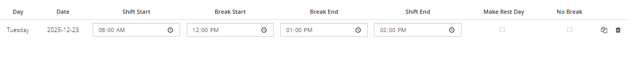 - Take note that during Rest Day, Holiday, or Rest Day and Holiday, employees are allowed to file their SA less than the required hours to work regardless if this policy is enabled/disabled.