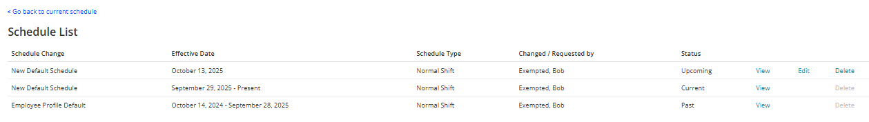 You will be redirected back to the Employee Profile of the employee. To view the changes, re-access the “Work Schedule” tab.