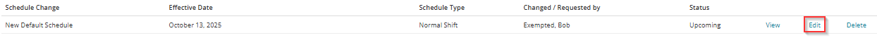 Important Note: By default, there is no Edit capability for Schedule Adjustment. If a Schedule Adjustment is no longer applicable, the user has to Cancel the Adjustment then apply for a new one. |