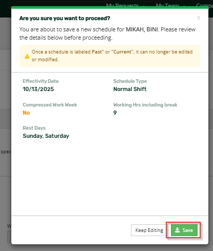 Step 6: Confirm by clicking “Save”. Or you can "Keep Editing" the schedule.