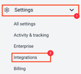 The first step is to make sure you have selected the correct organization on the top right corner of the page then click on the Settings Wheel and then click Integrations on the sidebar menu. Next, select the Trello logo from the list of available integrations as shown below.