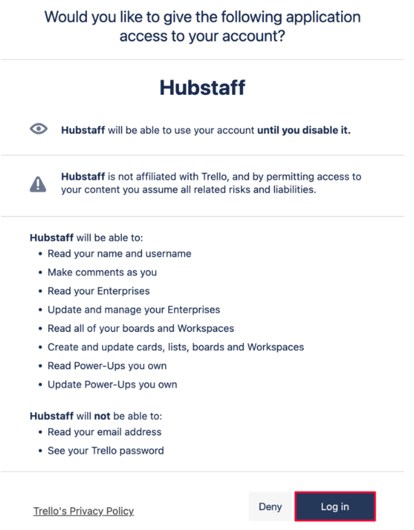 Login to your Trello account, then click Login/Allow on the Trello authorization screen.