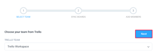 After authorization, choose the workspace you have created in your Trello account that you want to be associated with this integration. All the boards in that organization will be able to be connected with Hubstaff projects. Click Next to continue.