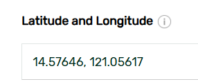 c. Copy and paste these values into the Latitude and Longitude field of the Locations page.