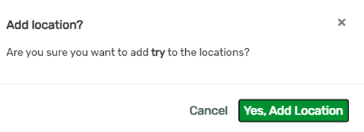 6. Click Yes to proceed with adding the location.