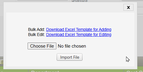 2. Select Import Excel > Choose between Bulk Add or Bulk Edit template