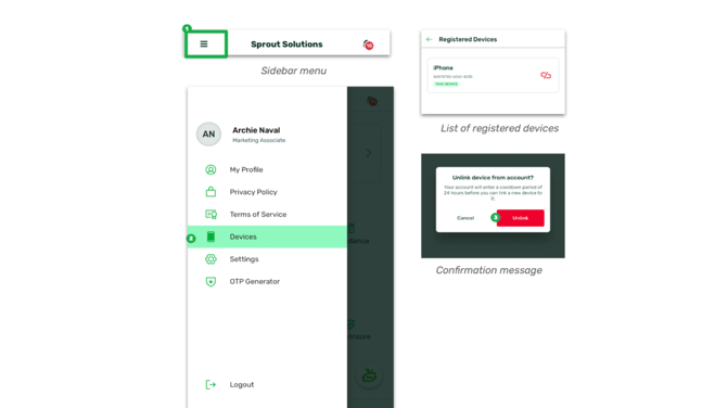 - How to unlink an employee’s registered mobile device in the Sprout HR app, and