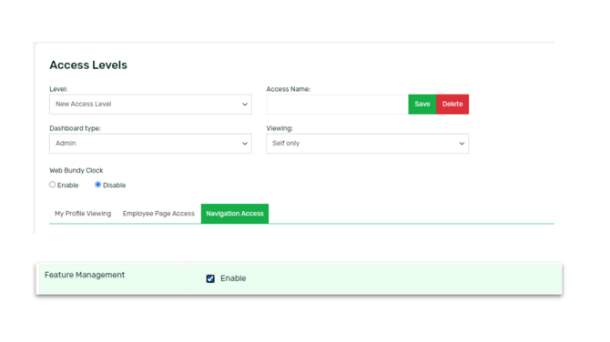 Go to your Admin dashboard > Access Levels > Navigation Access and scroll down to Feature Management. Enable the feature by ticking the checkbox as seen below.