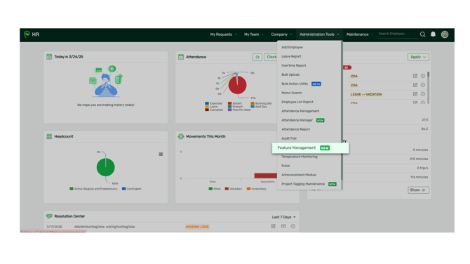 Once enabled, you can now go to Administration Tools in your navigation bar and access the Feature Management page.