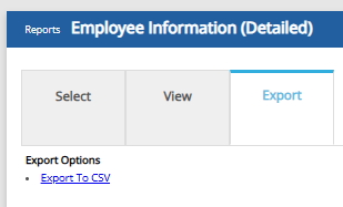 2. Export this as a CSV file (by selecting the Export tab). This action will create a spreadsheet listing all employee data listed in Performance+
