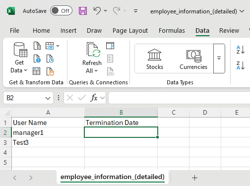 - Note: You can then delete all other columns (only username and termination date is needed)