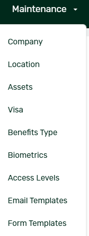 1. Click on the Maintenance > Company tab on the Navigation toolbar on the Sprout HR dashboard.