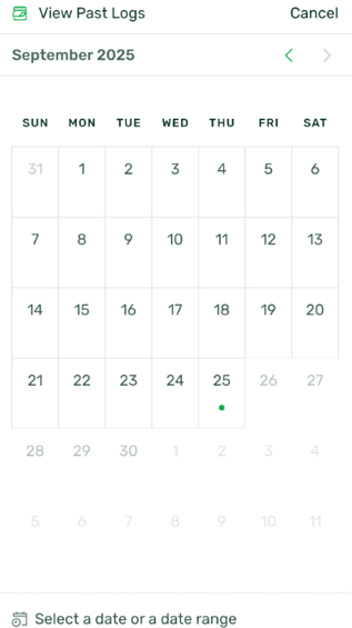 With this feature, Employees will be able to search up to 31 days of logs by clicking the View Past Logs button. The Attendance Logs initially displays previous and current date clock in/out logs as well as the date, time. and location of the said logs.