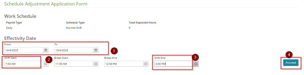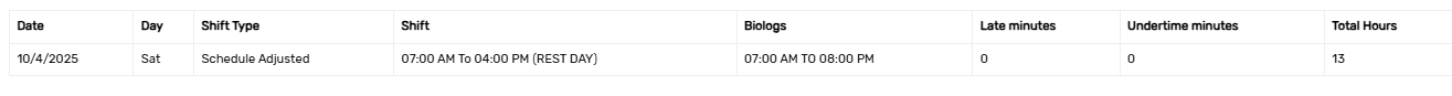 In this example, the employee’s schedule was adjusted to 7:00 AM to 4:00 PM.