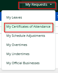 2. Then, apply for a Certificate of Attendance (You can also apply for an Official Business); for the purposes of this, the two tantamount to the same thing.