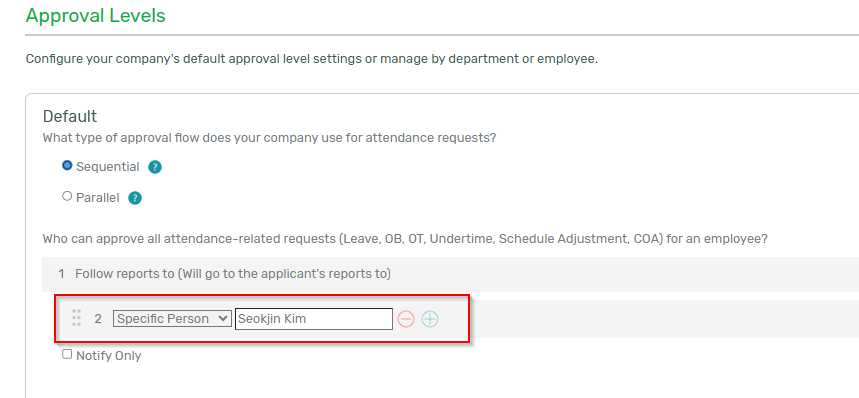 In Sprout HR, we do have a module we call Approval Level. Here, we can set who we prefer to approve the employee's application aside from the Level 1 Approver (which by default is the employee's assigned Immediate Supervisor).