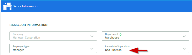 2. Click the Work Information tab. Here, the name of your approver shall appear