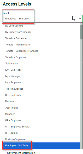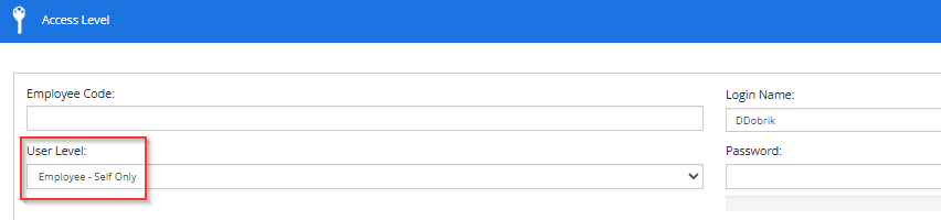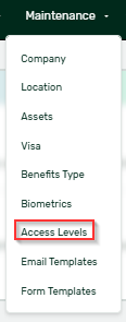 2. Go to Maintenance and select Access Levels. Select the Access Level of the employee from the Level dropdown list.