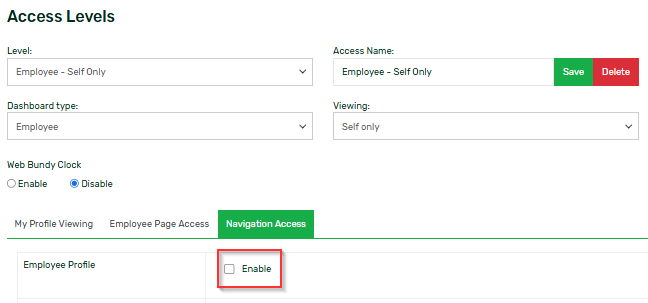 3. Click Navigation Access tab and check if Employee Profile is ticked.