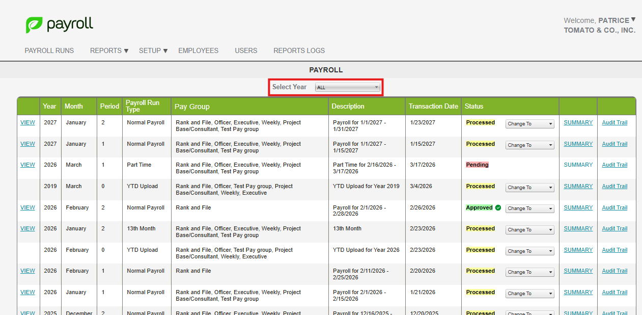 3. Review all payroll runs (including previous years) to check any Pending status payroll.