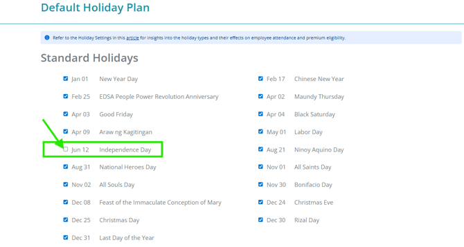 If the issue is affecting all employees assigned to the same holiday plan, the holiday might be listed/added in your Holiday Plan settings but isn't actually "active." If a holiday is added but the checkbox is left unticked, it won't be recognized by the system as non-working day.