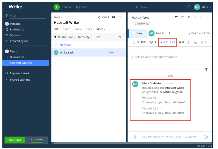 If you use Wrike for project management, tracking time to Wrike tasks is possible with Hubstaff. To enable this, you have to set it up in your Hubstaff account